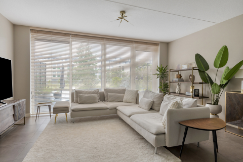 Bij binnenkomst valt meteen de rust en lichtheid op: dankzij de grote ramen en de plafondhoogte voelt het appartement ruim en open. De woonkamer biedt genoeg ruimte voor een comfortabele zithoek en een gezellige eethoek, terwijl de moderne keuken is voorzien van diverse inbouwapparatuur, een strak werkblad en zelfs een wasmachineaansluiting – ideaal voor compact en efficiënt wonen.